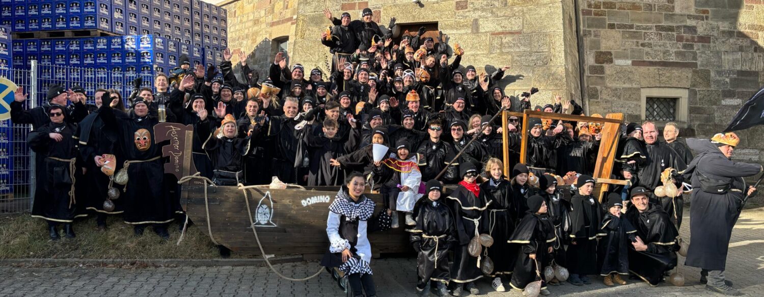 Über vierzig Leute bestellten bei unseren Präsidenten einen Dominoanzug, die wir in Hüfingen bei Frau Zachau nähen ließen. Die ersten Gummimasken hierfür bezog man vom ehemaligen „Schreibwaren-Horst“ und die zugehörigen Kordeln und Handschuhe von der „ZG“. Ein kompletter Domino kostete damals 150 DM. Zum ersten Mal in Erscheinung trat man am 13. Februar 1994 beim großen Sonntagsumzug in Donaueschingen.
